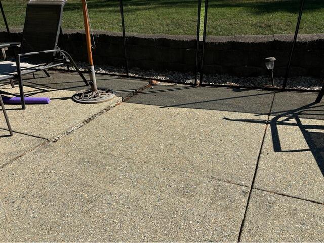 Notice the problematic sunken slab in the before photo from our project. The homeowner in North Reading, MA needed to preserve the life of their pool deck and remove trip hazards. Our expert team used the PolyLevel® system to lift and stabilize the sunken area. By injecting high-strength polyurethane foam, we precisely restored the slab. The rest of the pool deck was void filled for long-lasting stability. We further enhanced durability and appearance with NexusPro® Joint Sealant, expertly sealing cracks and preventing future damage.