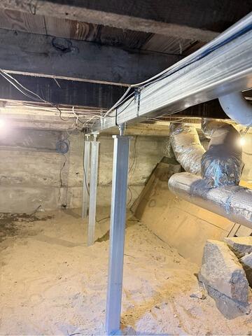In the before photo, you can see how the homeowner in Exeter, NH was dealing with failing lally columns, compromising the integrity of their crawl space. Notice the uneven floor and lack of support, which are common indicators of this issue. To address this, we installed the SmartJack® system, along with a supplemental beam, offering a precise and reliable solution. In the after photo, observe how the SmartJack® System assists in stabilizing and lifting the floors to their original elevation, providing long-lasting stability in their home.
