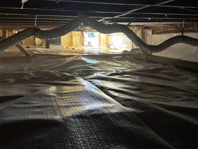 The Gloucester, MA homeowner faced sagging floors due to failing wooden supports, as seen in the before photo. They contacted us at Erickson Foundation Solutions to assess the escalating issue. After thorough inspection, we implemented a comprehensive remedy. Our team installed SmartJack® systems, lifting and stabilizing the existing floors. To safeguard against moisture and enhance energy efficiency, SilverGlo™ was layered alongside effective CleanSpace® vapor barrier systems coupled with Drainage Matting, enduring the structural integrity and insulating the space efficiently. The after photo reflects a secure, stable crawl space restored to optimal condition.