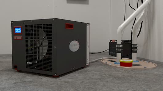Keep your basement dry all the time. A TripleSafe® Sump Pump System (shown here), combined with a SaniDry® dehumidifier, represents the ultimate in basement waterproofing and humidity control.