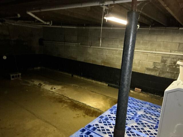 In Shirley, MA, the homeowner faced water intrusion in their basement due to failed sump pump performance, leaving the area flooded. In the before photos, notice the water pooling on the floor. Our team at Erickson Foundation Solutions installed the CleanSpace encapsulation, WaterGuard drainage system, and robust TripleSafe Sump Pump. As seen in the after photos, these installations provided a permanent solution by effectively channeling water away, ensuring a dry, secure basement, ready for storage or entertainment.