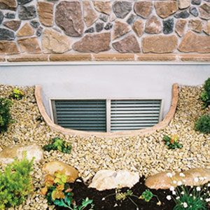 RockWell has duplicated the look of real stone so you don't have to look out of your new basement windows at a plastic-looking well. These egress window wells add curb appeal and a pleasing view from both inside and outside the house. An integral step allows easy exit (if ever needed).