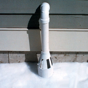 The IceGuard® fits over the top of your discharge line to provide water with a secondary escape route. When the main line is working correctly, water simply flows out as usual. However, when the discharge line is frozen, the IceGuard® allows water to escape through slotted openings in the drain pipe. This ensures that any water your sump pump is removing from your basement is safely cleared away outside your home, preventing any backed up or frozen lines. The IceGuard® is compatible with all our sump pump systems.