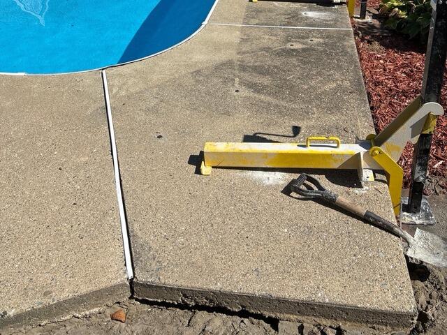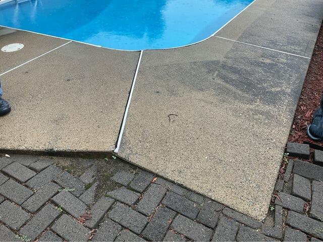 In Nashua, NH, a homeowner faced a common issue: a sunken corner of their pool deck due to soil washout beneath the concrete slabs. As seen in the 'before' photo, this not only compromised the aesthetics but also posed safety hazards. Erickson Foundation Solutions addressed the problem using the PolyLevel® system. Our experts injected high-strength polyurethane foam to lift and stabilize the sunken concrete. Additionally, NexusPro® Joint Sealant was applied to the concrete, sealing out water to prevent future erosion—even during severe weather conditions, as highlighted in the 'after' photo.