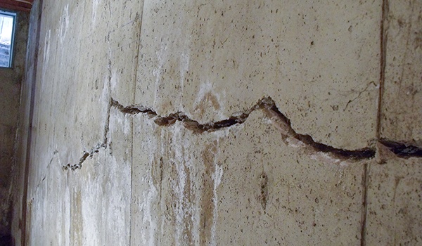Common signs of a foundation wall problem include stair step cracking, inward tilting, and bowing or buckling.