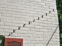 Stair-step cracking is very common in brick and concrete block walls and is a sure sign of foundation settlement. As the settlement house movement continues, vertical cracks may widen or become uneven as wall sections tilt away from each other, indicating more severe displacement.