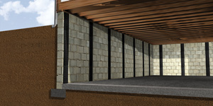 In some cases, a wall anchor system can't be used to repair a bowing wall because the yard outside the house isn't accessible. When we at Erickson Foundation Solutions encounter this kind of problem, we suggest that you install our PowerBrace™ Foundation Wall System or CarbonArmor® Wall Reinforcing System.