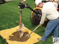 At the beginning of each earth anchor installation, sod is carefully removed from your lawn and placed aside for later. A sheet is laid down to help protect your lawn and landscaping, and an earth anchor hole is made using a power auger.