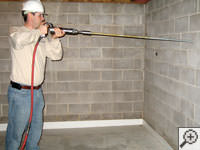 Strips add strength. When epoxied to the foundation wall, strips of carbon fiber fabric provide reinforcement that's 10 times stronger than steel.